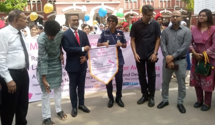 বিশ্বব্যাপী অক্টোবর মাসকে স্তন ক্যান্সার সচেতনতা মাস হিসেবে পালন উপলক্ষে যশোরে র্যালি, আলোচনা সভা ও সাংস্কৃতিক অনুষ্ঠান অনুষ্ঠিত হয়েছে। বৃহস্পতিবার সকাল থেকে দুপুর পর্যন্ত এ আয়োজন করে অরাজনৈতিক ও অলাভজনক সংগঠন “আমরা নারী” ও এর সহযোগী সংগঠন “আমরা নারী রিসার্চ অ্যান্ড ডেভেলপমেন্ট”, সার্বিক তত্ত্বাবধানে ছিল ইয়াভ ফাউন্ডেশন।