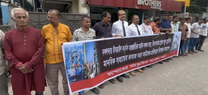 গ্লোবাল সুমুদ ফ্লোটিলার জাহাজ বহর আটকের প্রতিবাদে যশোরে সাংস্কৃতিক সংগঠনগুলোর মানববন্ধন
