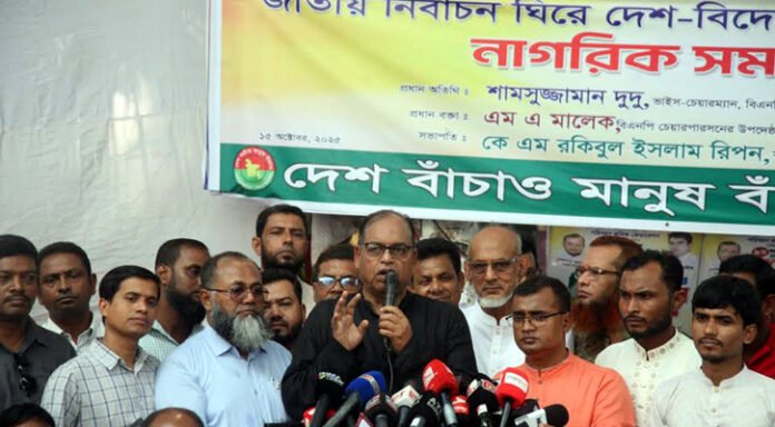 বুধবার (১৫ অক্টোবর) জাতীয় প্রেসক্লাবের সামনে ‘দেশ মানুষ বাঁচাও আন্দোলন’র উদ্যোগে আয়োজিত এক নাগরিক সমাবেশে প্রধান অতিথির বক্তব্যে তিনি এসব কথা বলেন।