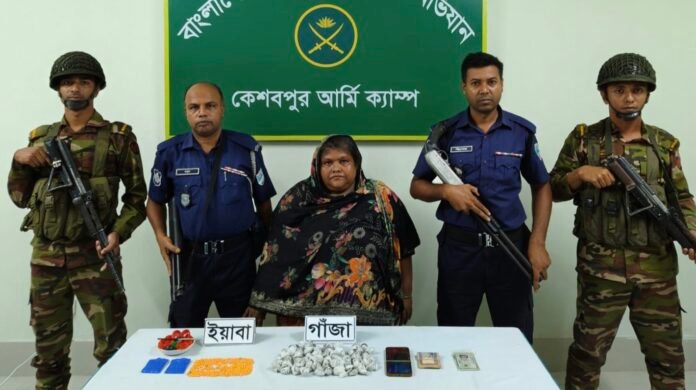 যশোর অফিস: যশোরের মনিরামপুরে সেনাবাহিনীর অভিযানে বিপুল পরিমাণ ইয়াবা ও গাঁজাসহ এক নারী মাদক ব্যবসায়ীকে গ্রেফতার করা হয়েছে। মঙ্গলবার বিকালে কেশবপুর আর্মি ক্যাম্পের ক্যাপ্টেন মাহফুজের নেতৃত্বে উপজেলার ঝাঁপা বাজার এলাকায় এ অভিযান পরিচালনা করা হয়।