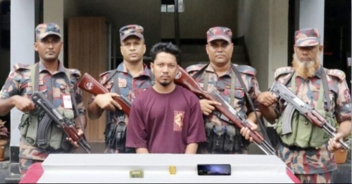 যশোর অফিস: যশোরের চাঁনপাড়া বাজার এলাকা থেকে ১৭৩.৭৬ গ্রাম ওজনের একটি স্বর্ণের বারসহ বাসার শেখ (২৩) নামে এক যুবককে আটক করেছে বর্ডার গার্ড বাংলাদেশ (বিজিবি)। বৃহস্পতিবার (৩০ অক্টোবর) সকাল ১০টার দিকে যশোর ব্যাটালিয়ন (৪৯ বিজিবি)-এর একটি বিশেষ টহলদল গোপন সংবাদের ভিত্তিতে এ অভিযান পরিচালনা করে।