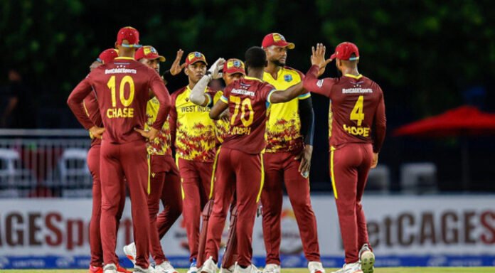প্রথম দিকে কিছুটা চাপে পড়েছিল ওয়েস্ট ইন্ডিজ। ইনিংসের তৃতীয় ওভারেই মাত্র ১ রানে আউট হন অ্যালিক আথানাজে। মাহেদি হাসানের বলে লিটন দাসের স্টাম্পিংয়ে বিদায় নেন তিনি। এরপর কিছুটা আশা জাগিয়েছিলেন উইকেটরক্ষক ব্যাটার আমির জানগু, ২৩ বলে ৩৪ রানের ঝোড়ো ইনিংস খেলেন তিনি, তবে রিশাদ হোসেনের বলেই এলবিডব্লিউ হয়ে ফেরেন।