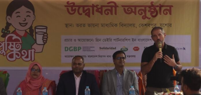নিরাপদ দুধ উৎপাদন ও গ্রহণ বিষয়ে সচেতনতা বৃদ্ধির লক্ষ্যে যশোরে ‘পুষ্টি কথা’ কর্মসূচির উদ্বোধন হয়েছে। বৃহস্পতিবার বিকেলে কেশবপুরের ভরত ভায়না মাধ্যমিক বিদ্যালয়ে প্রায় ৬০০ শিক্ষার্থী, স্থানীয় নারী-পুরুষ, দুগ্ধ খামারি ও বিভিন্ন পেশাজীবীর অংশগ্রহণে কর্মসূচির সূচনা হয়।