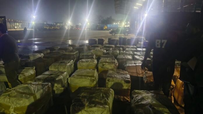 মঙ্গলবার (১৩ জানুয়ারি) রাতে বেনাপোল কাস্টমস হাউসের ৩১ নম্বর কাঁচামালের শেডে গোপন তথ্যের ভিত্তিতে চালানটি আটক করা হয়। আমদানিকৃত দুটি ভারতীয় ট্রাক থেকে পণ্য খালাসের সময় সন্দেহ দেখা দিলে বেনাপোল কাস্টমসের উর্ধ্বতন কর্মকর্তাদের উপস্থিতিতে পরীক্ষা চালানো হয়।