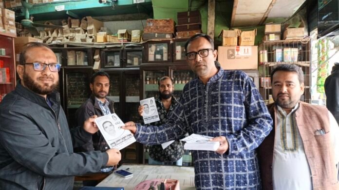 ত্রয়োদশ জাতীয় সংসদ নির্বাচন২০২৬ উপলক্ষে যশোর-৩ (সদর) সংসদীয় আসনে জাতীয় গণতান্ত্রিক পার্টি (জাগপা) মনোনীত সংসদ সদস্য পদপ্রার্থী মো.নিজামদ্দিন অমিত চশমা প্রতীকের পক্ষে নির্বাচনী হ্যান্ডবিল বিতরণ করেছেন।