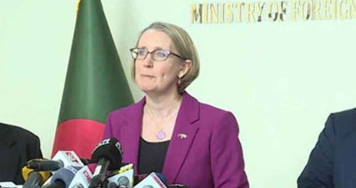 সারাহ কুক বলেন, অর্থনৈতিক প্রবৃদ্ধি, অভিবাসন, নিরাপত্তা, জলবায়ু পরিবর্তন এবং রোহিঙ্গা ইস্যুসহ বিভিন্ন ক্ষেত্রে সহযোগিতা বাড়ানোর বিষয়ে আলোচনা হয়েছে।