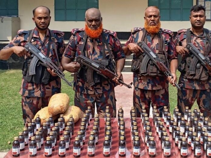 বিজিবি সূত্র জানায়, যশোর ব্যাটালিয়ন (৪৯ বিজিবি) এর ধান্যখোলা বিওপির সদস্যরা সীমান্তবর্তী বাহাদুরপুর মাঠে অভিযান চালিয়ে মালিকবিহীন অবস্থায় ৪৯ দশমিক ৫ কেজি গাঁজা উদ্ধার করেন। অপরদিকে চৌগাছা সীমান্তের আন্দুলিয়া বিওপির সদস্যরা আরশিংড়ি মাঠের একটি পুকুরপাড় থেকে ৩ কেজি গাঁজা ও ১১০ বোতল উইনসেরেক্স কফ সিরাপ উদ্ধার করেন।