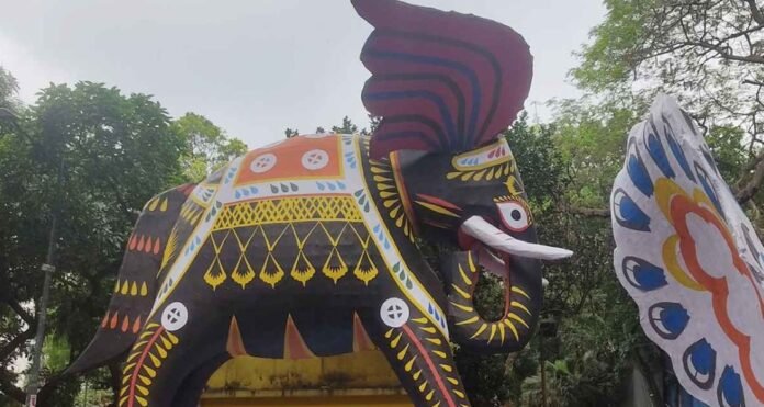 লোকঐতিহ্য ও স্বকীয়তাকে সামনে রেখে সাজানো হয়েছে এবারের আয়োজন। বাঁশ, কাঠ ও রঙিন কাগজে তৈরি বিশাল বাঘ, হাতি, ময়ূর এবং মা-শিশুর প্রতিকৃতি শোভাযাত্রাকে করে তুলেছে দৃষ্টিনন্দন। এবারের মূল বার্তা অশুভ শক্তির বিনাশ এবং কল্যাণময় আগামীর প্রত্যাশা।