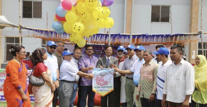 শহিদ জয়, যশোর: যশোর বিজ্ঞান ও প্রযুক্তি বিশ্ববিদ্যালয়ে (যবিপ্রবি) বর্ণাঢ্য আয়োজনের মধ্য দিয়ে শুরু হয়েছে বার্ষিক ক্রীড়া প্রতিযোগিতা-২০২৬। জাতীয় সংগীত পরিবেশন, জাতীয় পতাকা,বিশ্ববিদ্যালয় ও অলিম্পিকের পতাকা উত্তোলন, বেলুন-ফেস্টুন উড়ানো এবং শপথ গ্রহণসহ নানা আয়োজনের মধ্য দিয়ে শনিবার (১৮ এপ্রিল) সকাল ১০টায় বিশ্ববিদ্যালয়ের কেন্দ্রীয় খেলার মাঠে এ প্রতিযোগিতার উদ্বোধন করা হয়।
