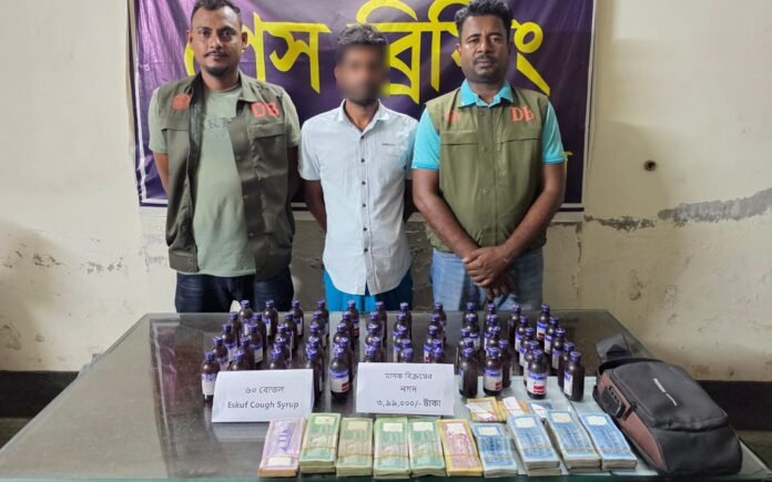 যশোরে ডিবির অভিযানে ৬০ বোতল অবৈধ সিরাপ ও প্রায় ৪ লাখ টাকা উদ্ধার, আটক ১